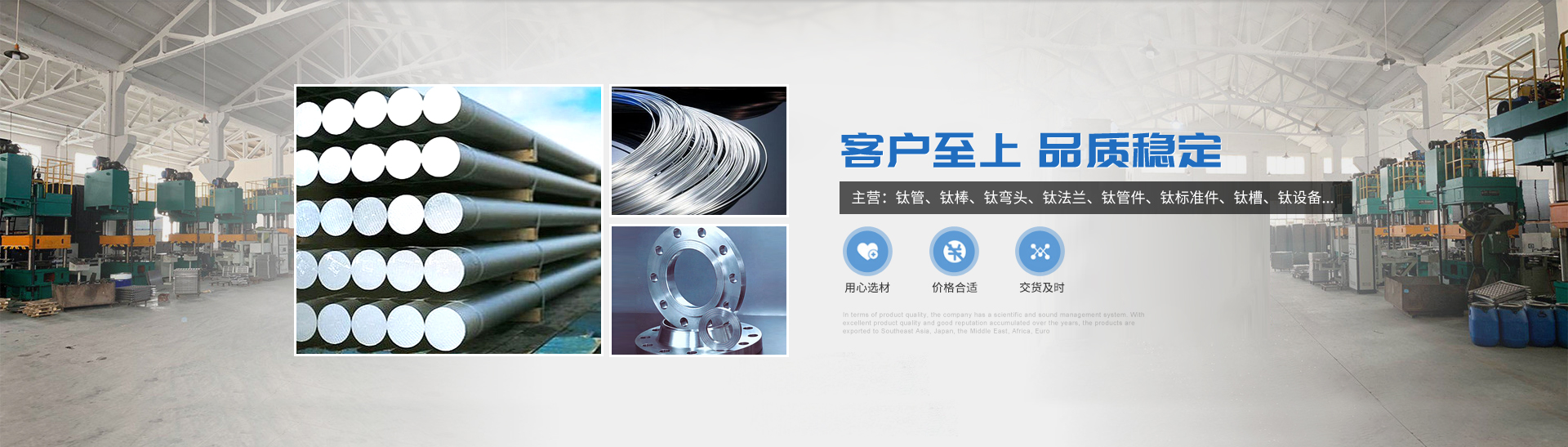 本公司的主營產品鈦制品有,鈦管,鈦棒,鈦彎頭,鈦法蘭,鈦管件,鈦標準件,鈦槽,鈦設備,鈦沖壓彎頭等。所生產各種規格的鈦制品主要運用于化工、電鍍、石油、電子、環保、海洋等領域"以質量求生存,靠服務求發展“為宗旨,客戶的滿意是我們的追求,歡迎各界用戶來函來電,傳真,洽談貿易。
